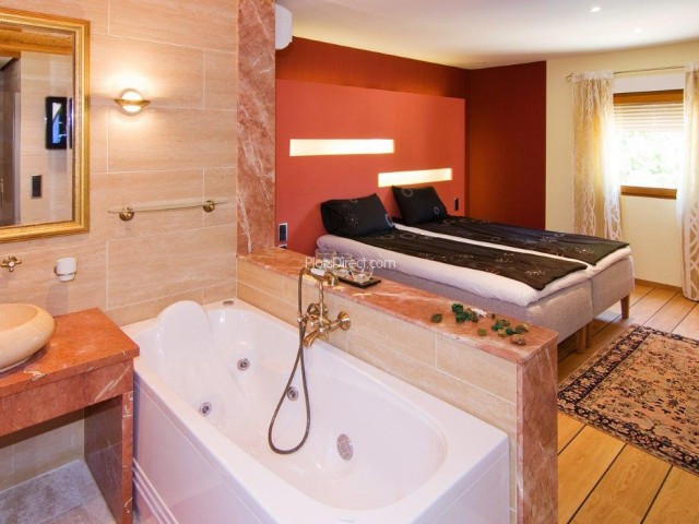 There is a total of 4 double bedrooms with dressing rooms and 4 bathrooms with Jacuzzi baths or showers and guest WC. There is also a sauna.