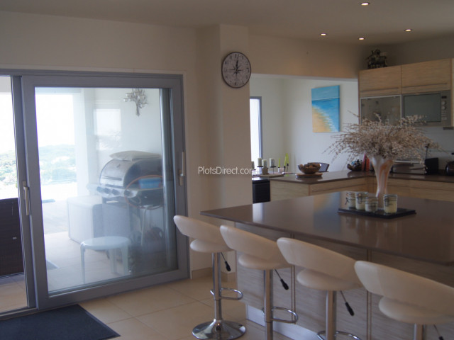 Full width glass doors in the lounge area then slide open to a decked naya and sun terrace.